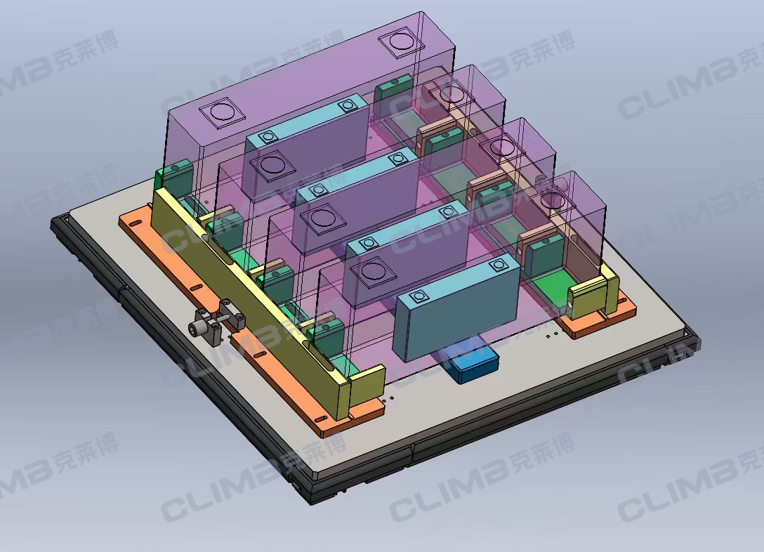 这款420*420标准尺寸托盘主要用于承载四组方形铝壳电池,并在高速生产线上流转。考虑到当前物流环节已基本升级为高速线,而在线体流转过程中电池表面易产生磨损,因此我们特别设计了这款新型托盘。它不仅可根据客户的换型需求,快速调整长、宽、高等尺寸,还能有效降低电池在高速输送中的磨损风险。